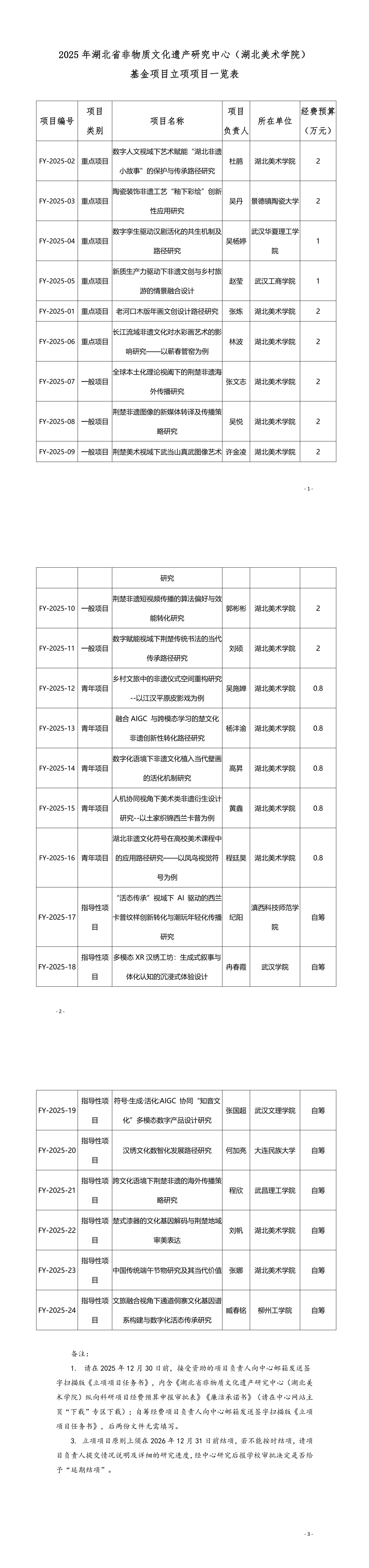 湖北省非物质文化遗产研究中心 (湖北美术学院)关于发布2025年度中心基金项目立项的通知